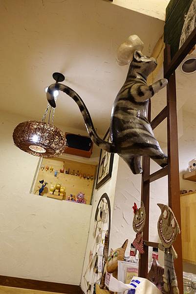 結帳櫃台很可愛有隻貓廚再爬梯子很逗趣。