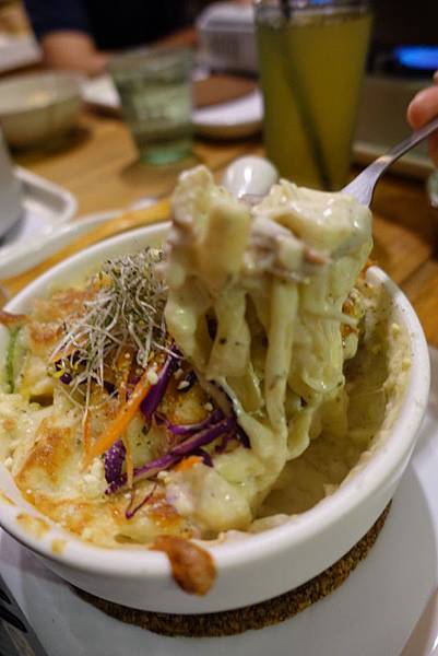 而焗麵中的豬肉片也很軟嫩捏,很好吃,這樣一份不算大,但是加上旁邊的小火鍋就是超級令人滿足阿!