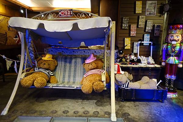 除了上面那些國家的裝飾,還有很多熊熊,躺在椅子上、箱子裡、電話亭中,都可以跟他們拍上好幾張照片。