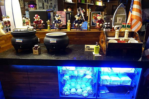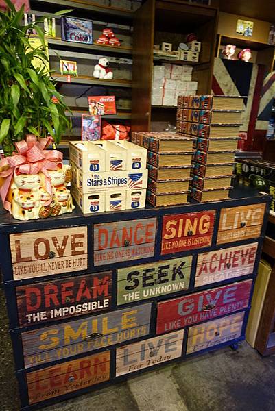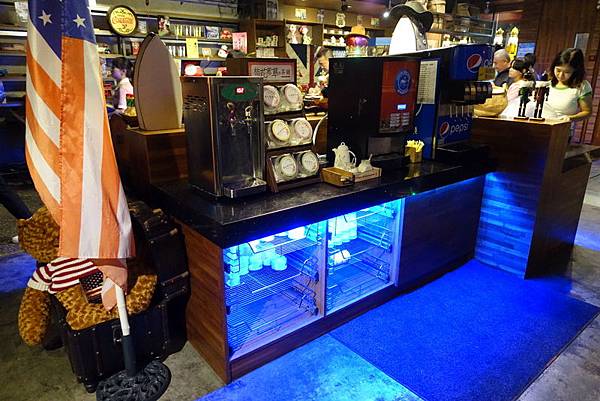 史提克先生從一進門就充滿美式風格的設計讓人眼睛都張大了,還有很多玩具像是帽子、鬍子、眼鏡眼罩等可以讓顧客妝飾拍照。