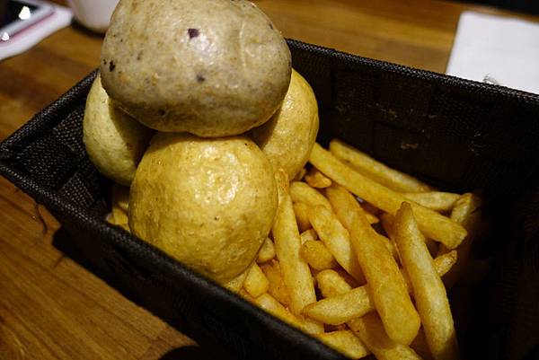 很特別的附餐餐包阿,和我們常見那種理麵包奶油的不同,他叫樂活餐包,是手工養生五穀餐包,吃起來有點像五穀饅頭哈哈很好吃!