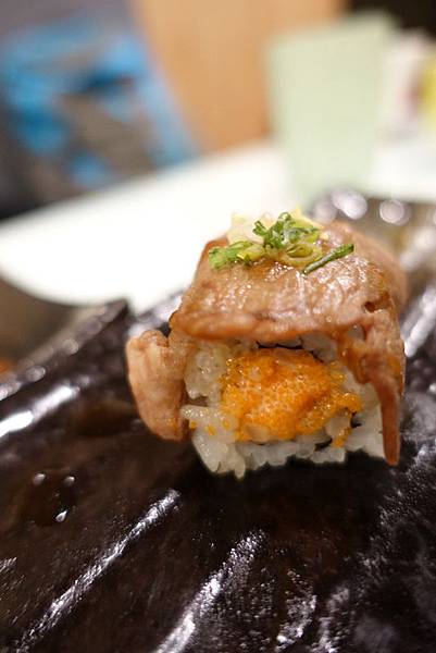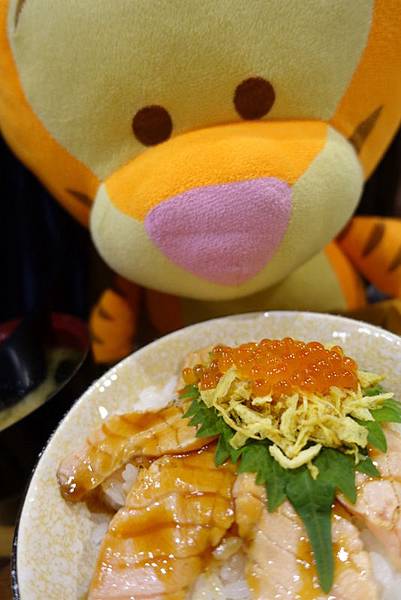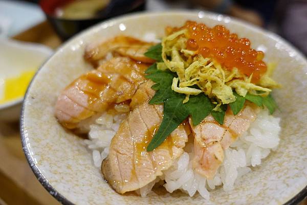 鮭魚卵看了就好開心,喜歡它逼逼波波在嘴巴裡的感覺,鮭魚的油脂在這裡好像比較少一點,但是肉質很軟好像入口化開一樣,很好吃!