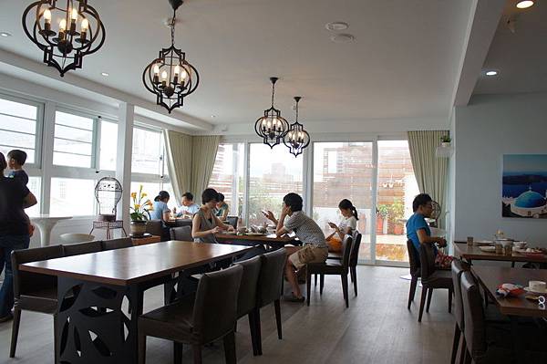 用餐區是走純白希臘風,而且餐桌都保持得非常乾淨。