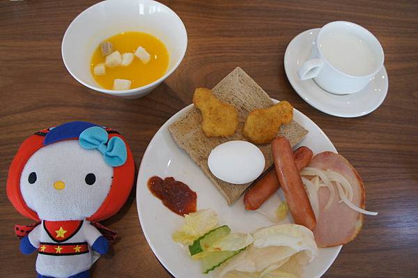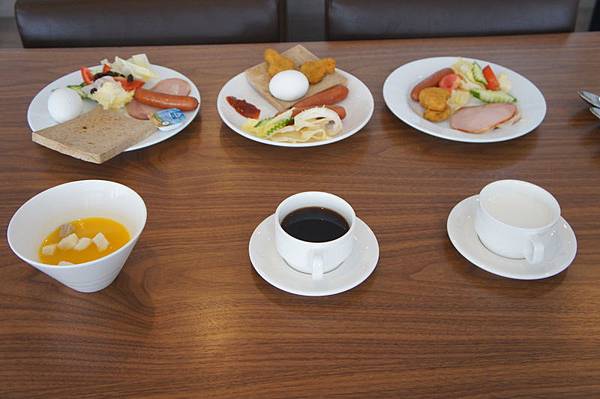 有中式稀飯、西式熱狗土司兩種,飲料、茶包和鮮奶,選擇也不算太少,吃起來不會太油膩,蠻健康的。