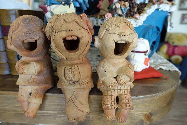 這三隻逗趣的小豬仔就坐在櫃檯上。
