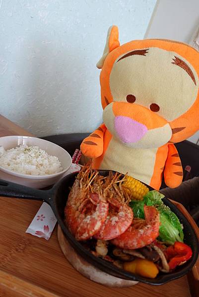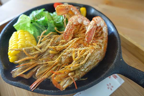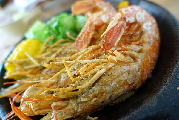 鐵鍋蒜味大紅蝦 $480 (附沙拉、濃湯、手工甜點與咖啡或紅茶)