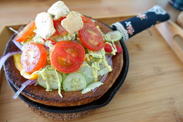 鮪魚鮮蔬鐵鍋鬆餅 $260 (附沙拉與咖啡或紅茶)