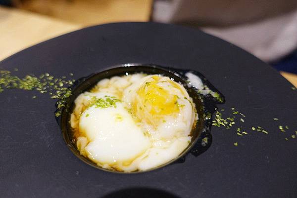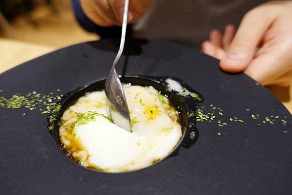 看溫泉蛋的模樣真可愛,白白一顆湯匙剛壓下去還不會直接切開,切開以後很漂亮耶!