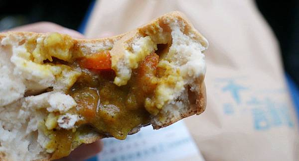 咬開以後咖哩醬就要流出來了阿~~~~~小辣但很好吃,難得吃到鹹的紅豆餅耶而且蠻厲害的!!!