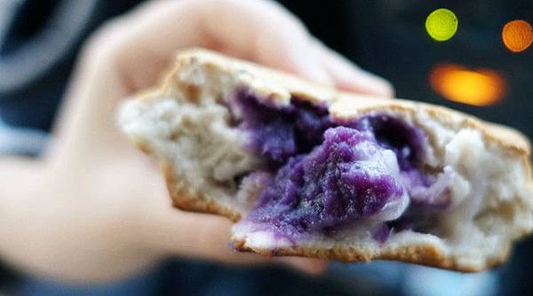 好紫好紫好嚇人,地瓜味很濃,整個紅豆餅甜味非常自然好吃阿!!!