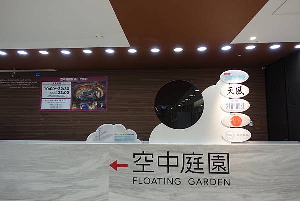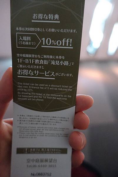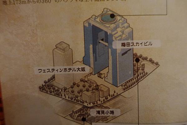 吃完了位在藍天大廈地下一樓滝見小路木地大阪燒,日本自助第一晚的重頭戲就是要到空中庭園看大阪夜景