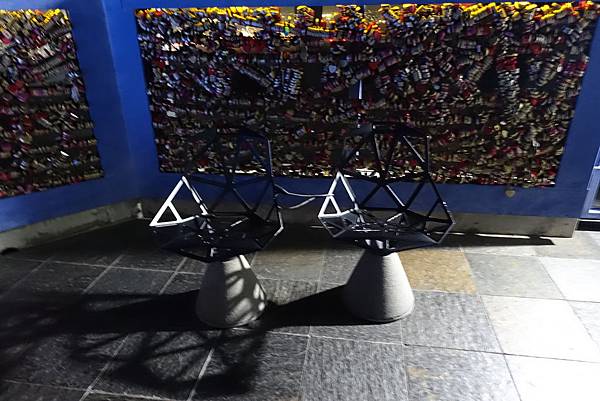 除了夜景之外,在屋頂旁還有個小區域,下個樓梯就到情人許願的聖地了!