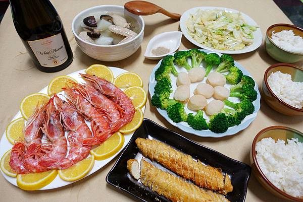 還有白蝦、南美洲小鮑魚、魚翅、大鮑魚、鯛魚片等....
