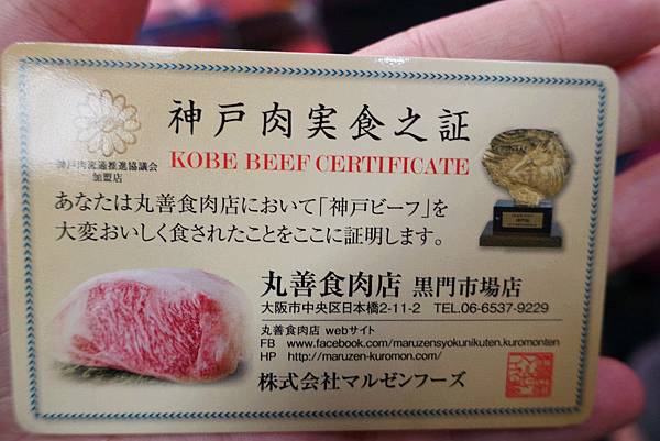 丸善食肉店很可愛唷,點餐完以後會發神戶肉食實之証