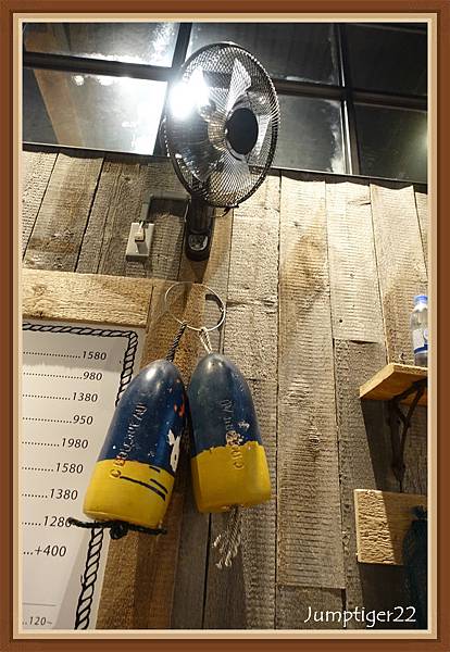 酒罐阿、漁網阿、救生圈等等木板釘製的很有味道!