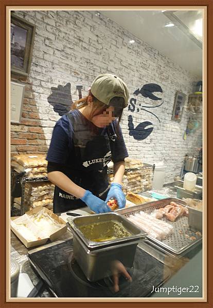 店員熟練的製作著等一下要被我吞食的龍蝦三明治!!!!