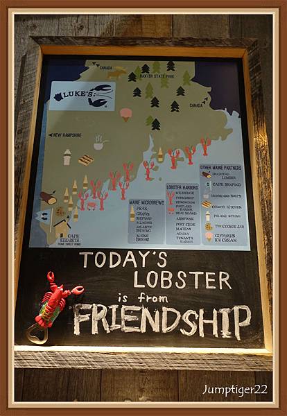 非常可愛的圖片,下方還會公告今日龍蝦是從緬因州的哪裡來的,向我來的這天龍蝦是從FRIENDSHIP佛倫德希普來的!