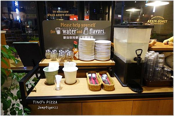 堤諾披薩這裡盤子、水、餐具調味料都是自助式唷~~~