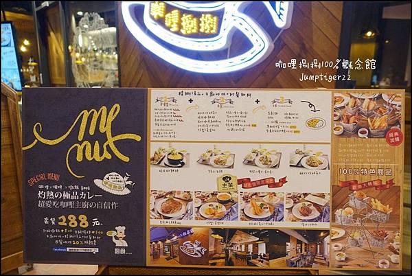 主打各式咖哩與各是主餐的組合套餐,基本套餐是288元。