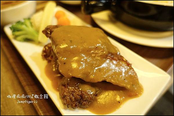 主菜是厚切沙朗牛,三大片沙朗牛,八分熟微微帶有誘人血色不過與咖哩融為一體了所以不易被誘惑XD