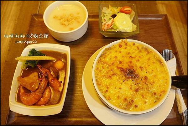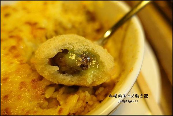 焗烤飯裡頭其實就已經拌入咖哩醬汁,所以沒有淋醬汁本身也是很有咖哩味,但是淋上之後更濃郁好吃![]()