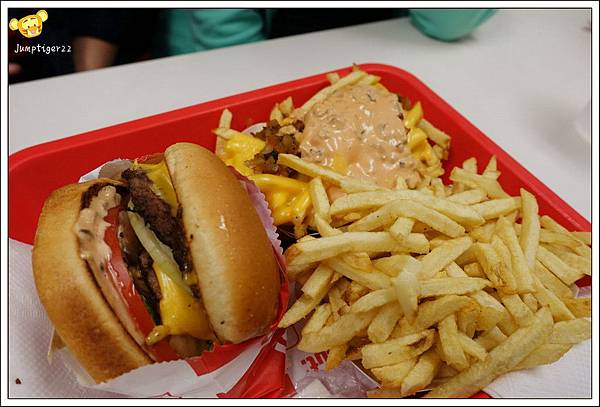 我點了Double-Double Burger(US 3.7),就是兩片起司兩片肉(一般是一片起司一片肉),如果想要變三層也有唷!!!