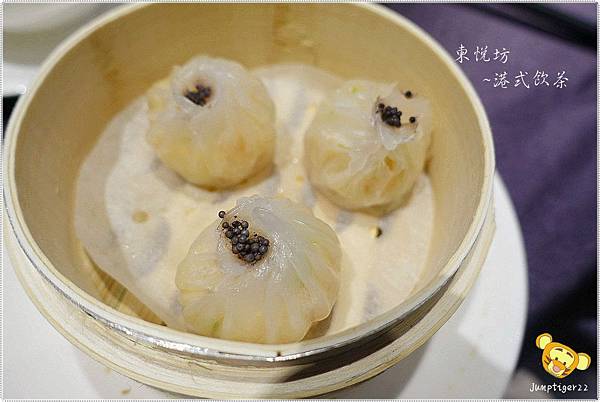 雖然上桌後是放在蒸籠裡,但是看起來還是很可愛,晶瑩剔透的模樣和顆顆魚子醬![]()
