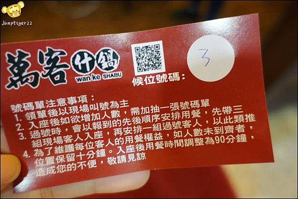 萬客什鍋因為用餐人潮多,下午五點開始營業,會在四點半時先發號碼牌,五點一到開始叫號入座。