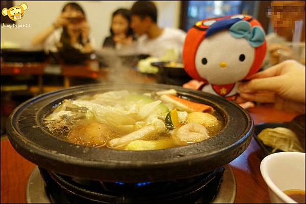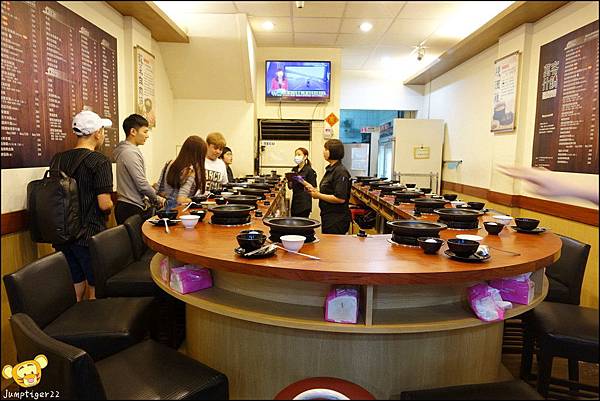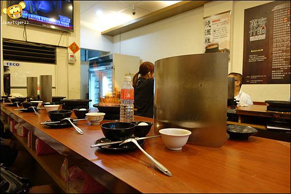 終於熬到了五點入座,呈現U字型的用餐空間,基本上一人一鍋,如果是共鍋的好像就都會坐在弧形轉彎處。