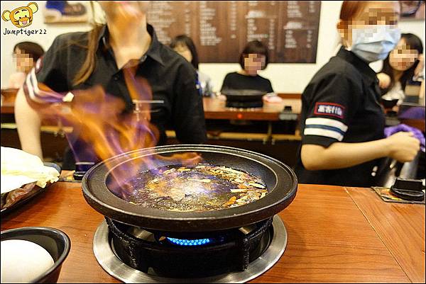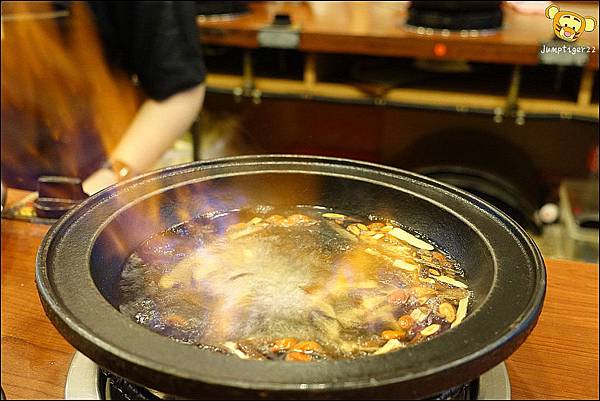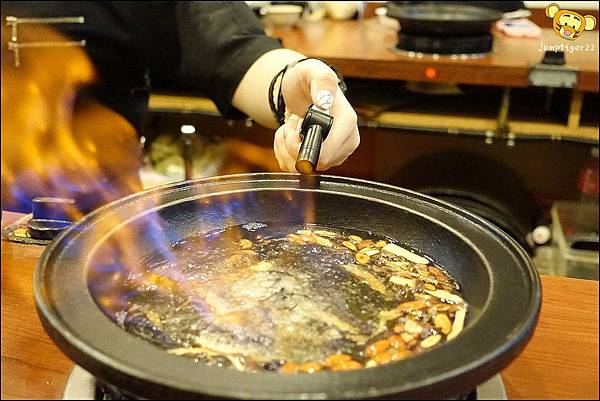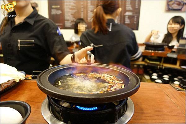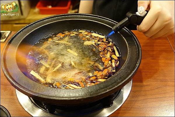在我的燒酒雞米酒湯底滾得差不多的時候,店員來幫我點火燒唷~~~(忽然很想唱火在燒~~~