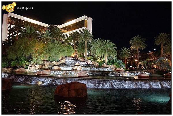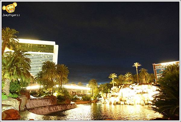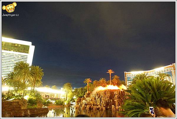 雖然是先有查好晚上整點會有Mirage美拉奇酒店的火山秀,但是我們走到這裡真的是剛八點五十八分,