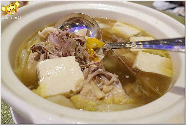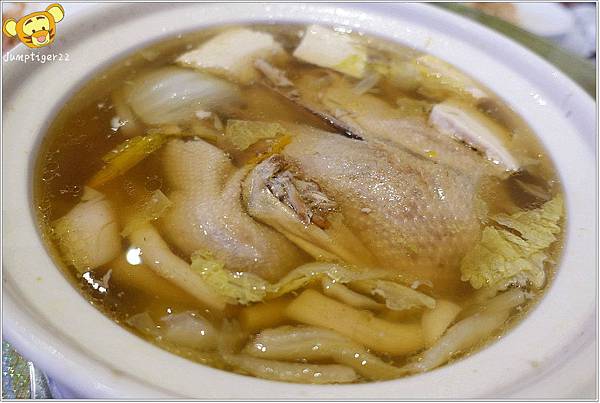 最後,(我以為是最後),來了一整隻雞,濃郁的雞湯香氣,同時有菇、白菜、豆腐下去燉煮顯得更為清甜阿!!!