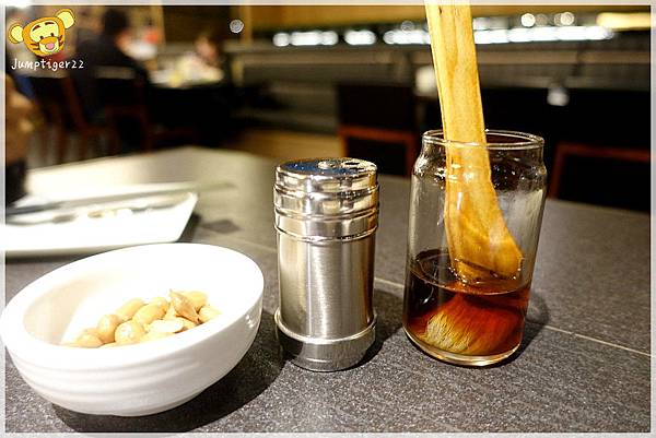 桌上已經放置好胡椒與麻油,還有前菜滷土豆。