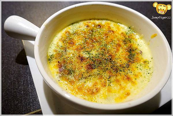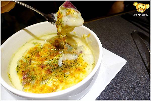 實在沒有想到,外表看起來非常緊實,湯匙一下原來焗烤下方的地瓜超級滑溜,