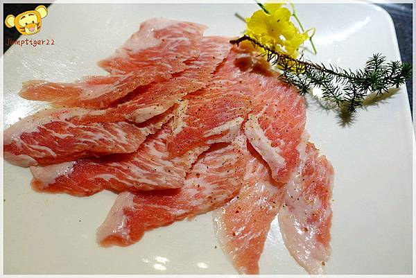 伊比利豬身上的油脂分布得頗為漂亮,也先調味過撒上些黑胡椒粉了。