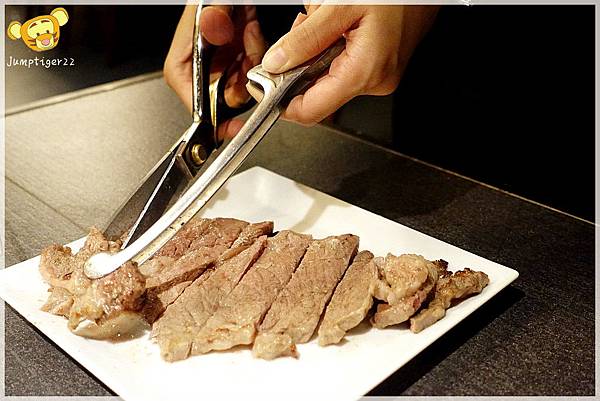 厚切肋眼服務生說他們會來幫我們烤,所以我們也就留到最後了~