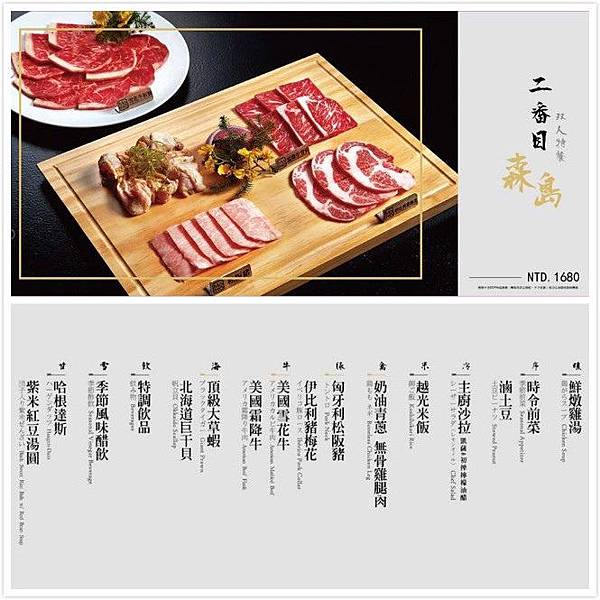菜單基本上都是以雙人套餐為搭配,每一種套餐稱之為番目(不是原住民那個頭目拉!)