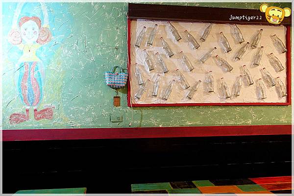 回頭發現上頭竟然還有小黑板分析披薩的形狀哈哈,部過這一側燈光就比較昏暗一點了。