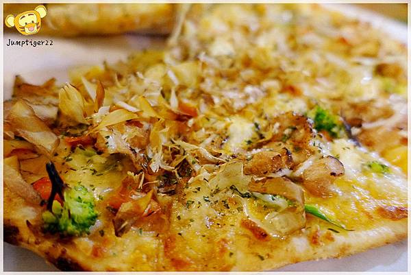 蜜炙燒豬運用了一些花椰菜,增添了披薩的色彩。