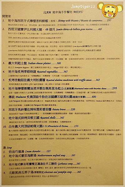 ▼Menu從開胃菜開始,濃湯,沙拉,披薩、燉飯、義大利麵與排餐式的地中海料理!!!