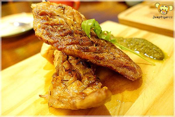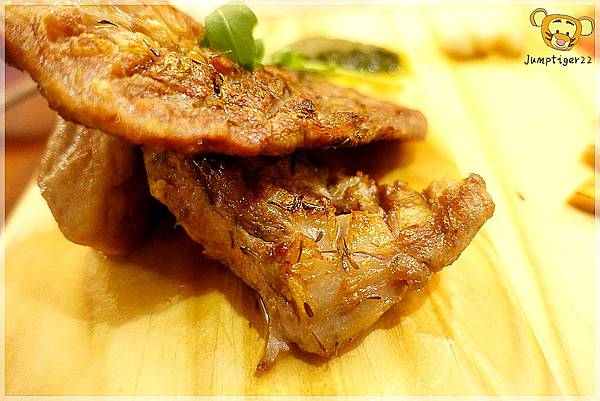 這豬肋眼蓋我可是剛好目睹他從廚房送出的那一刻,彷彿這木盤就在散發香氣阿!