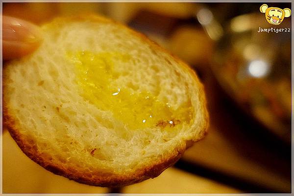 麵包Q鬆的淋上橄欖油,卻不油膩不嗆酸,有一點點明白為這麼這樣沾著吃了阿!
