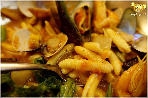 這道番茄風味完全不酸,而且醬汁分量很適中的不會讓麵、料浸泡太多以至於變軟爛產生喧賓奪主的感覺。