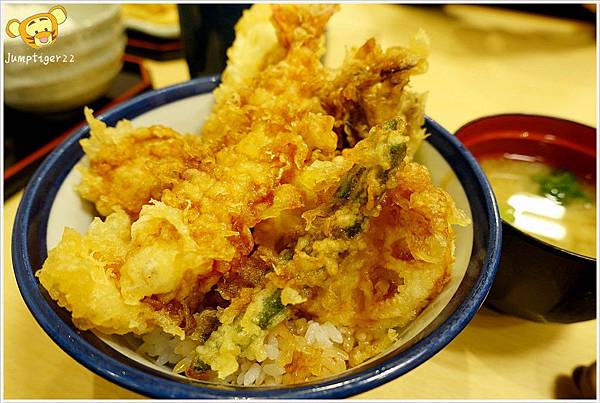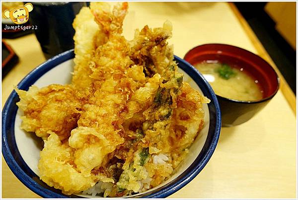 雖然說天丼不像套餐還有小配菜,就只有附上味噌湯,價格也比較高一點,但我覺得更值得阿!