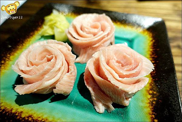 三朵松阪豬玫瑰花上桌,雖然我不懂為什麼每次都是豬肉被擺成花樣,但是很美就是了![]()
