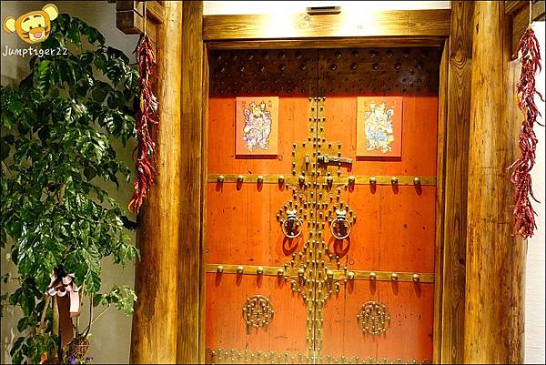 ▼ 上到二樓後是古代那種大紅門啊~~其實是電動門別傻傻地像古人一樣手握扣環敲門唷(人靠近就會開了誰這麼傻)