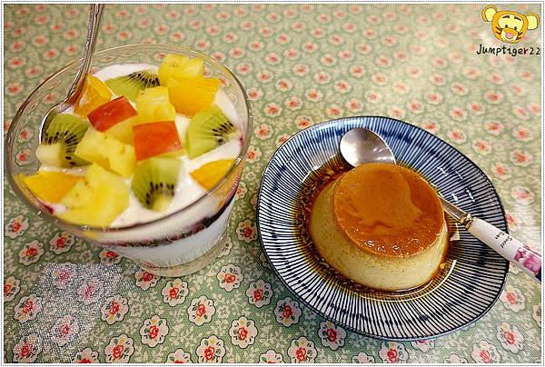 自製優格水果杯 $100 / 手工焦糖布丁 $70