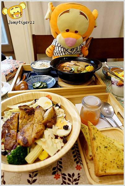 還有附上沙拉醬汁與大蒜風味的烤土司!!!(我超愛大蒜麵包阿)