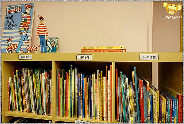 這裡的書櫃中還有很多外文書,分類成認知/情緒/幽默等型態,