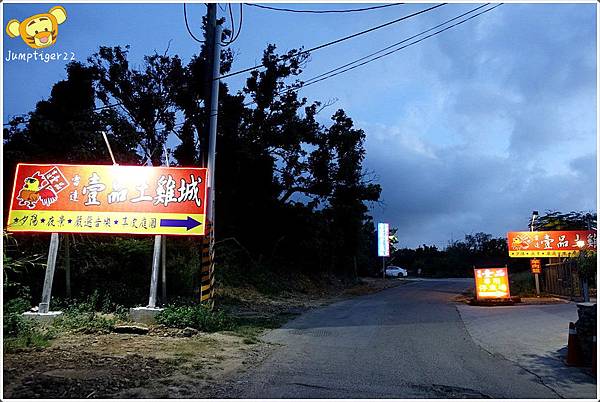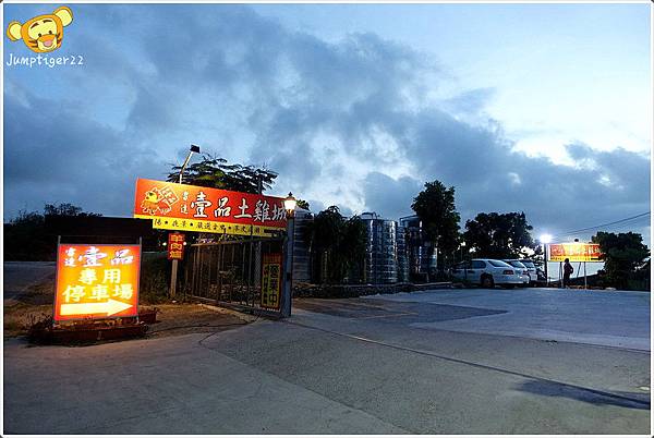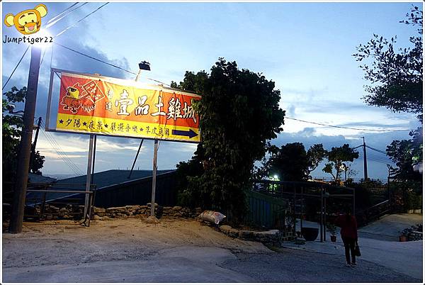 一路到達雷達壹品土雞城時夜幕也漸漸低垂,在逐漸昏暗的山路中,這大紅色的招牌讓你絕對不會錯過!